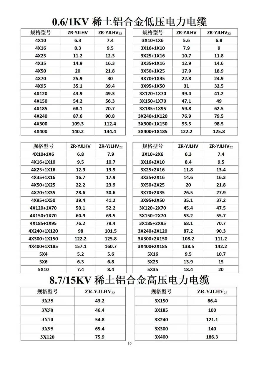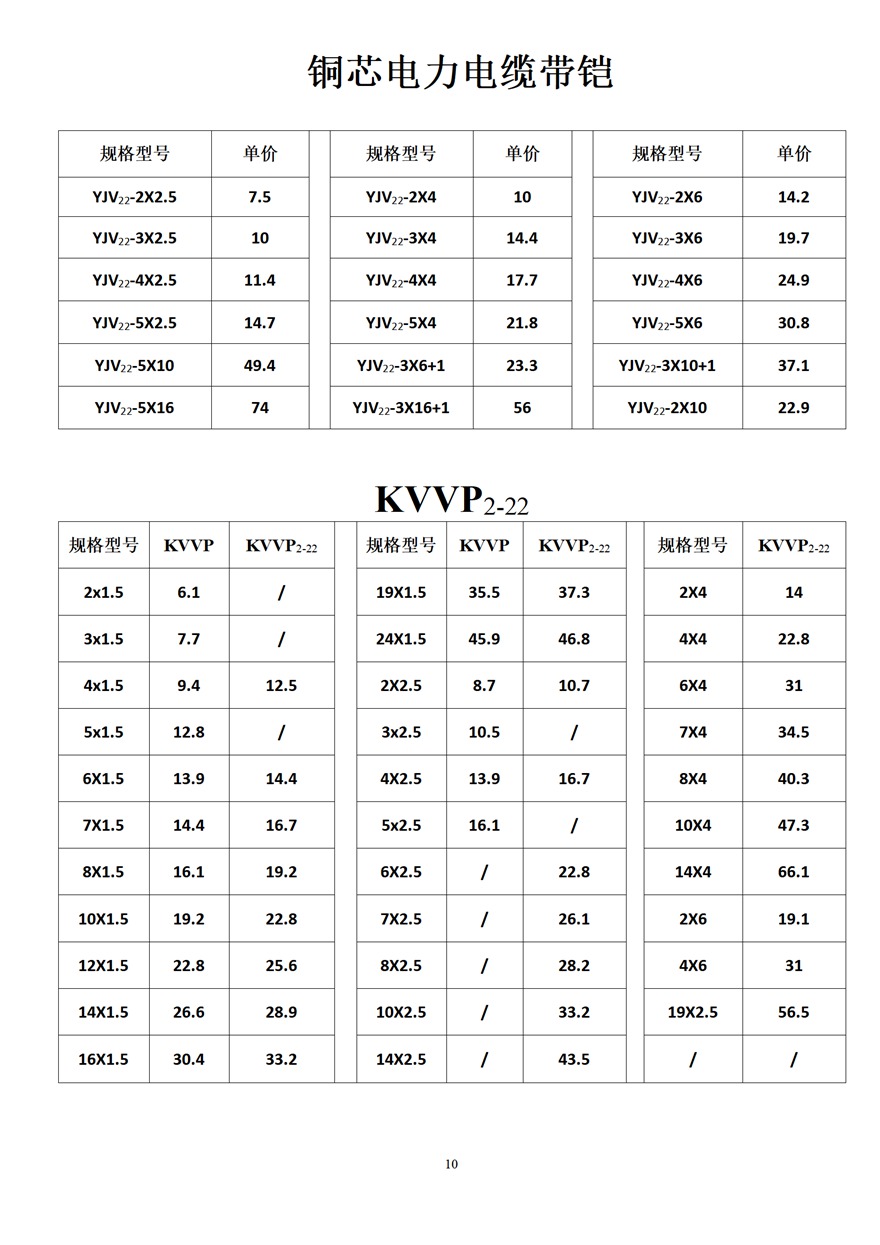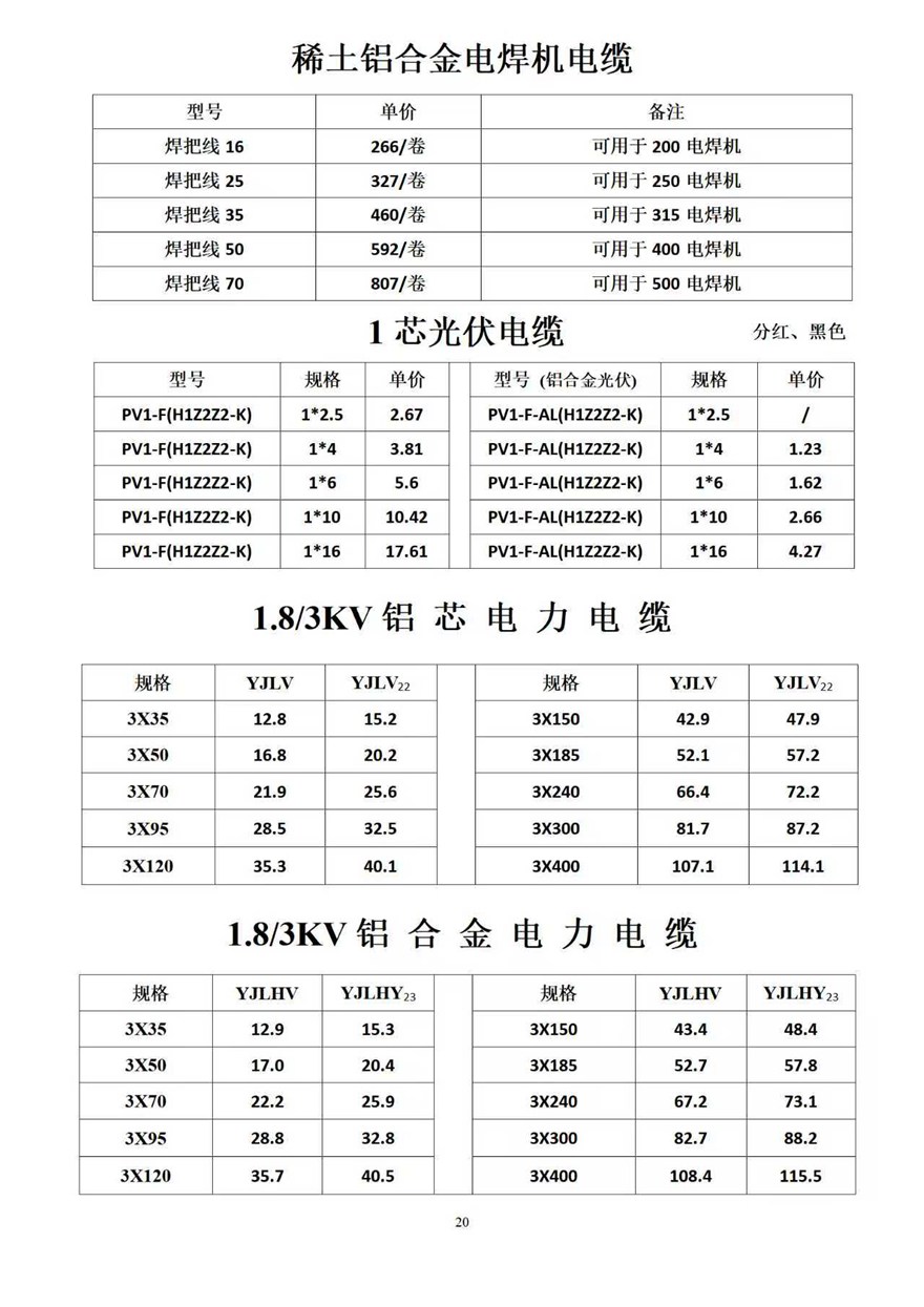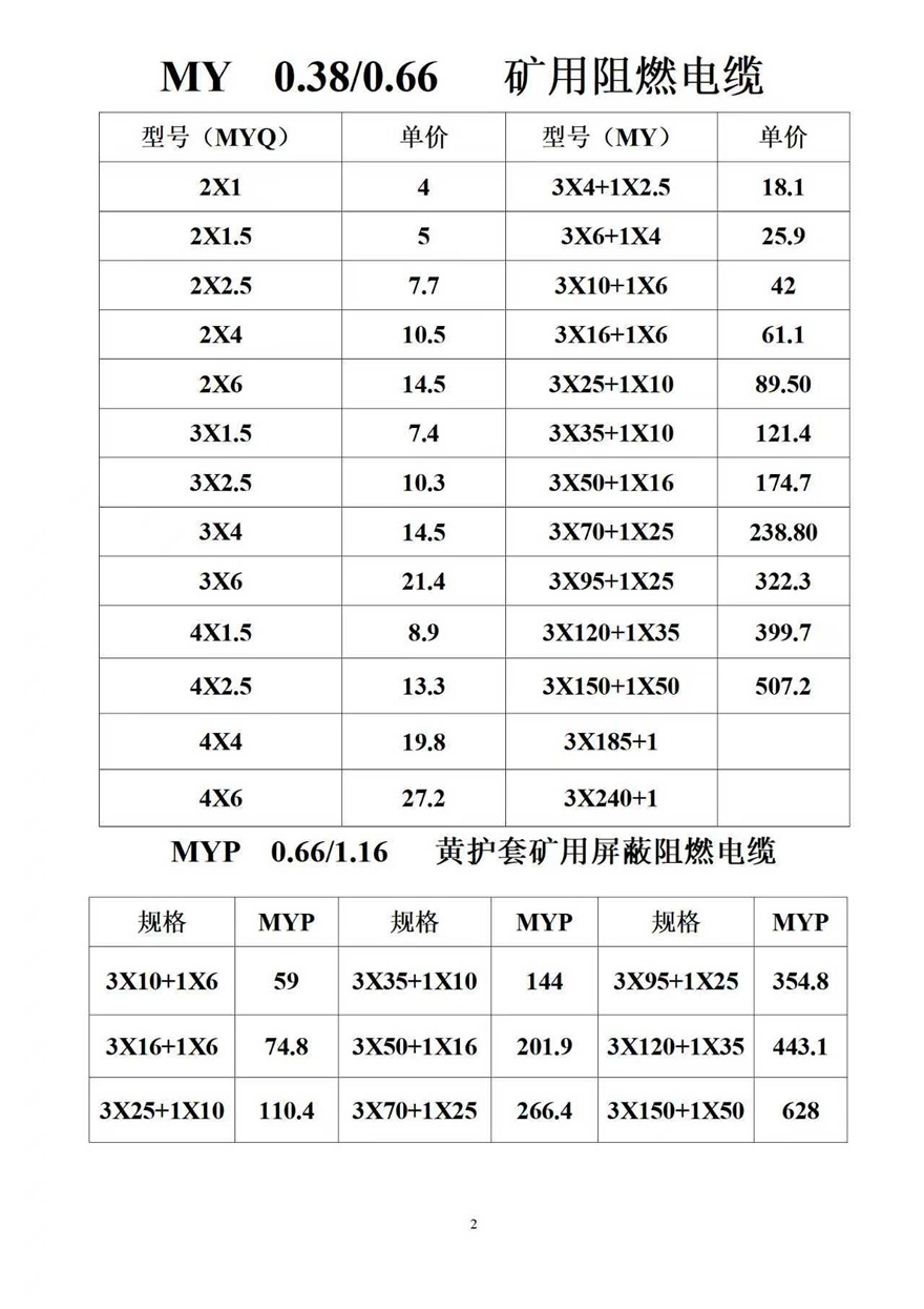 金峰電纜價格表
